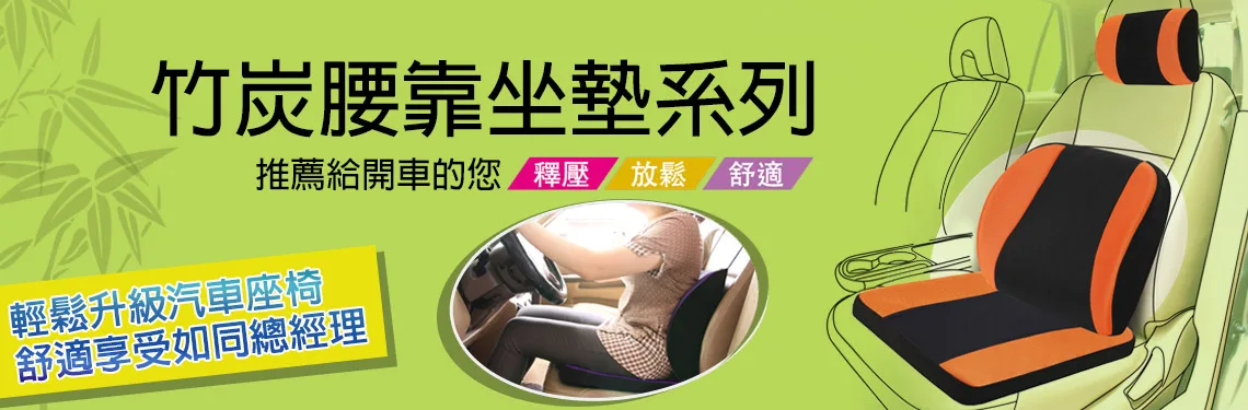添加台灣竹炭成為機能性健康墊體,配合人體坐姿工學設計,更凸顯車痴汽車竹炭腰靠坐墊的產品機能及價值。